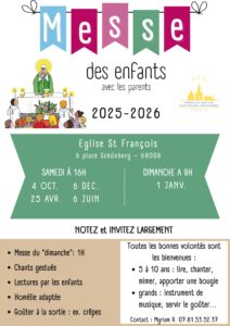 Une belle proposition pour les familles : venez participer à la messe des enfants à l’église St François d’Assise